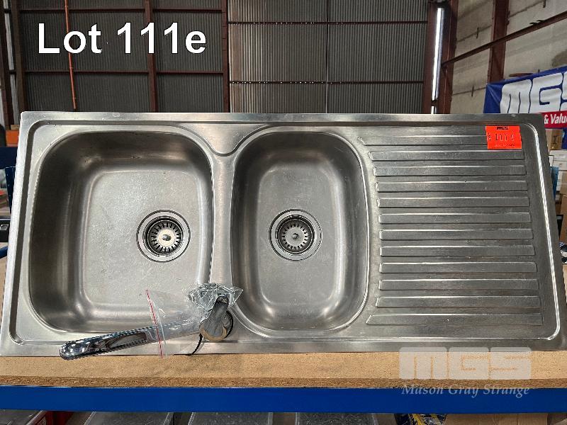 STAINLESS STEEL DOUBLE BOWL SINK 1080 x 480mm WITH MIXER TAP, FLEXI HOSE & PVC PLUMBING, READY TO INSTALL!