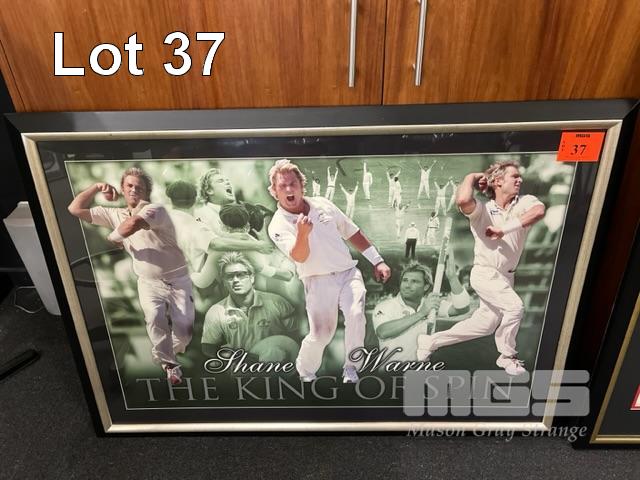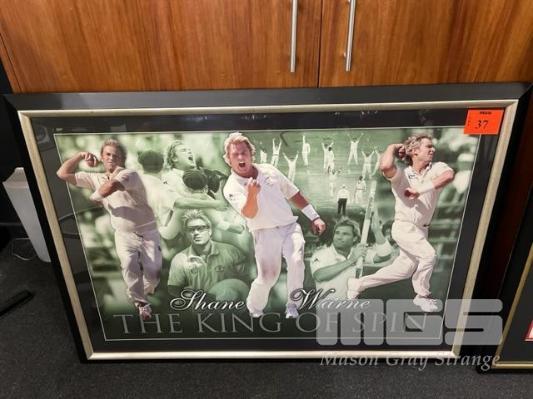 FRAMED 'KING OF SPIN' SHANE WARNE PRINT, 1100 x 800mm