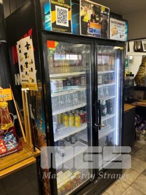 2 DOOR GLASS FRONT DISPLAY FRIDGE, 1000L CAP, 240v (CONTENTS NOT INCLUDED)