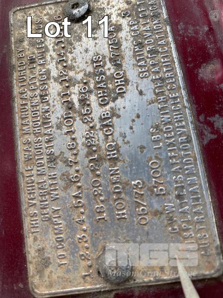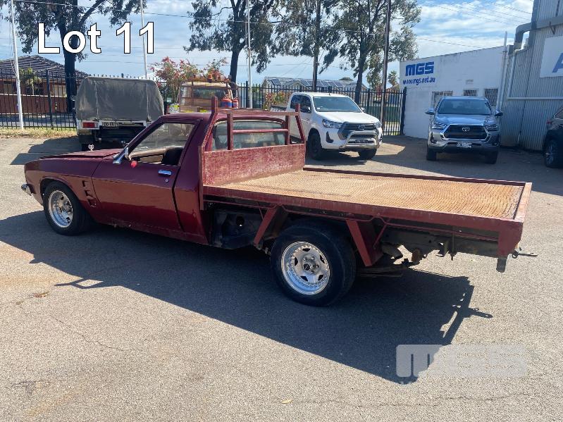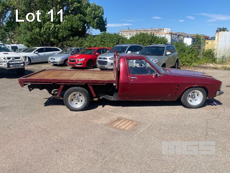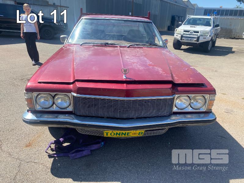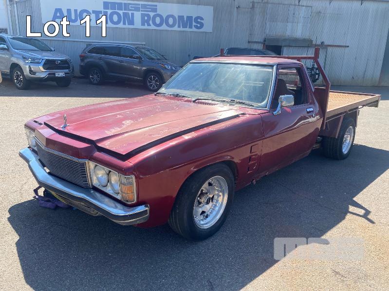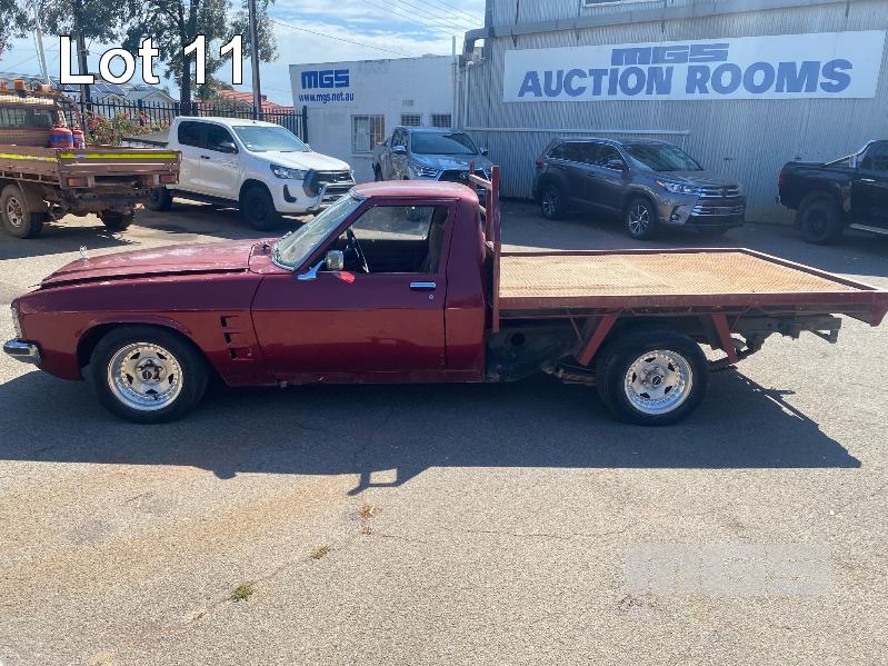 1973 HOLDEN HQ 1 TONNER TRAYTOP UTE REG: TONNE-8 (SA) VIN: DHQ27750A ENG: 07725631 ODO: 90,955kms SHOWING V8 PETROL, B&M SHIFTER 3 SPEED AUTOMATIC TRANSMISSION, BURGUNDY DUCO, 2 DOORS, 2 SEAT, POWER STEERING, STEEL TRAY, GTS DASH & STEERING WHEEL EDELBROCK MANIFOLD EXTRACTORS, 10 BOLT DIFF, CENTERLINE MAGS. KEY #13 (WITH 1 KEY/S)