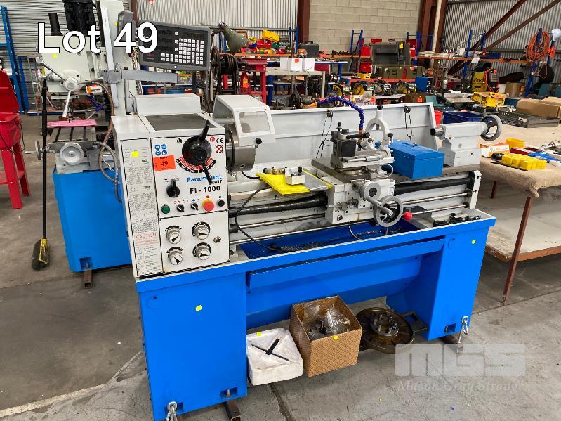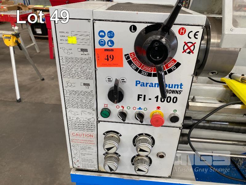 LATHE, PARAMOUNT BROWNS MOD: FI-1000 DOM: 2020 BETWEEN CENTRES: 1000mm SWING: 360mm SPINDLE BORE : 55mm WITH 3 AXIS DRO, SINO MOD: SD56-3V 3 & 4 JAW CHUCKS TOOL HOLDERS, FACE PLATE 2 x STEADIES & MANUALS, 240V