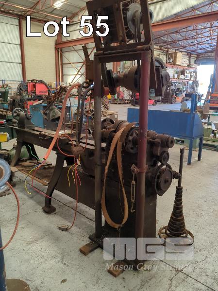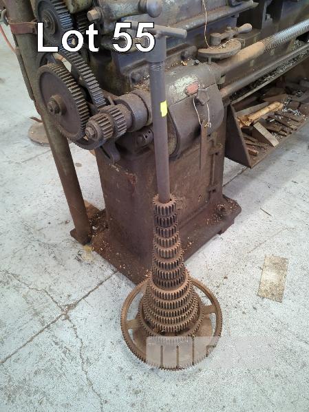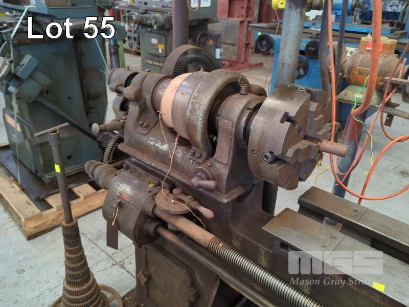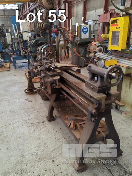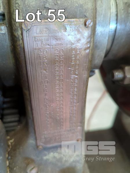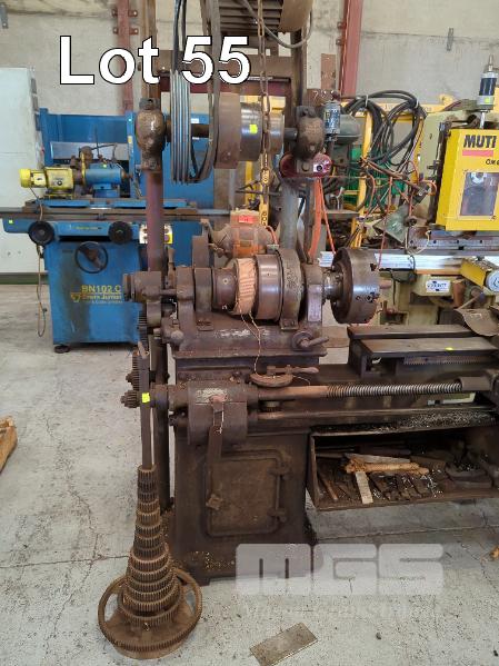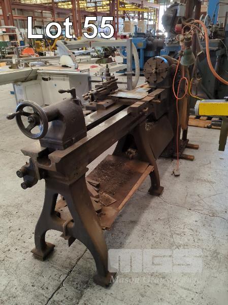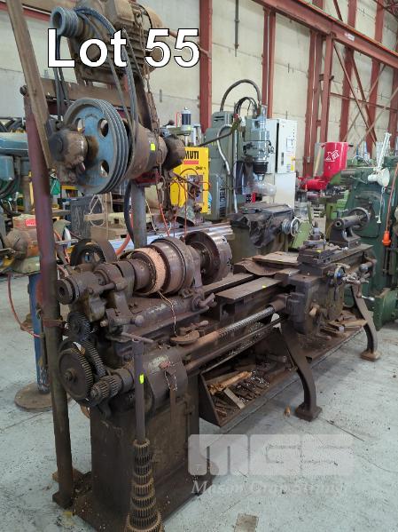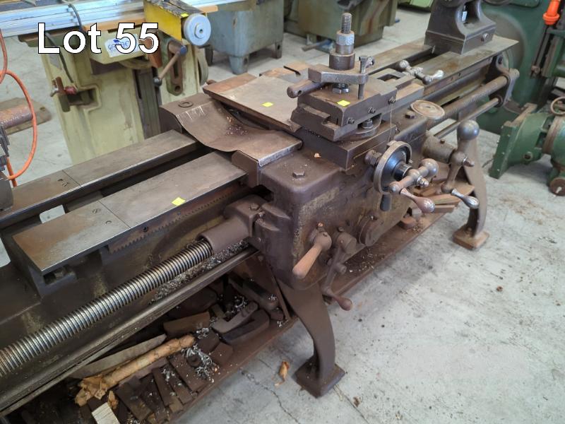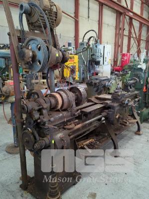 LATHE. D.R.G.M. MADE IN GERMANY, BELT DRIVE. GAP BED. BED LENGTH 1760mm, BETWEEN CENTRES 1470mm, SPINDLE BORE 35mm, SWING 500mm, WITH 4-JAW CHUCK 250mm DIA. & FULL SET OF RATIO GEARS. 415V.