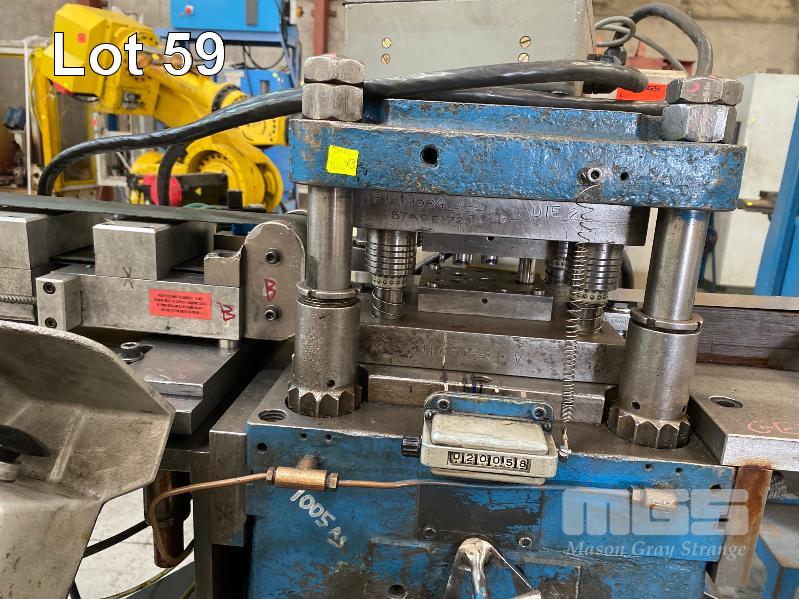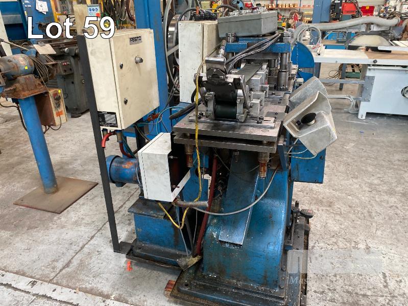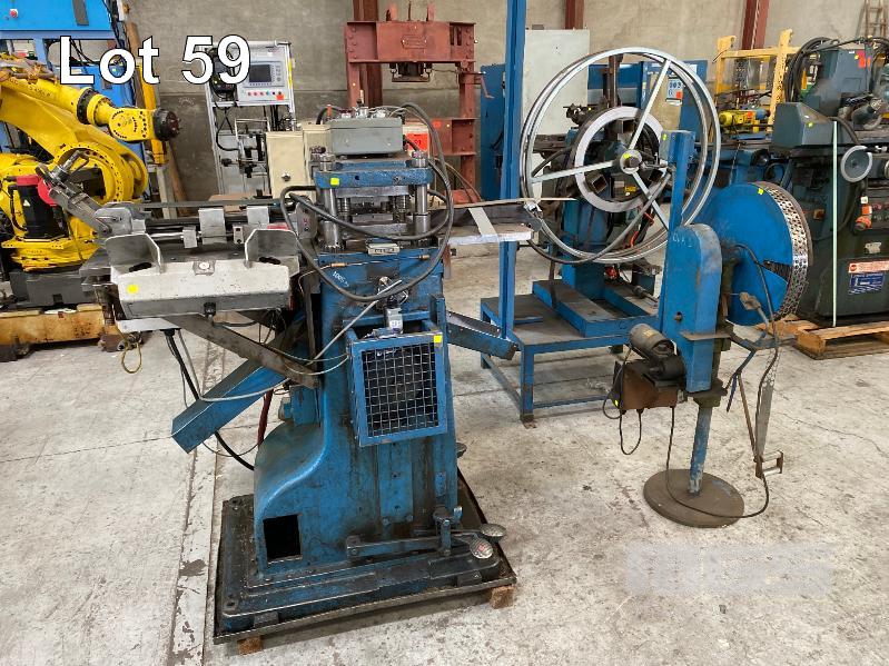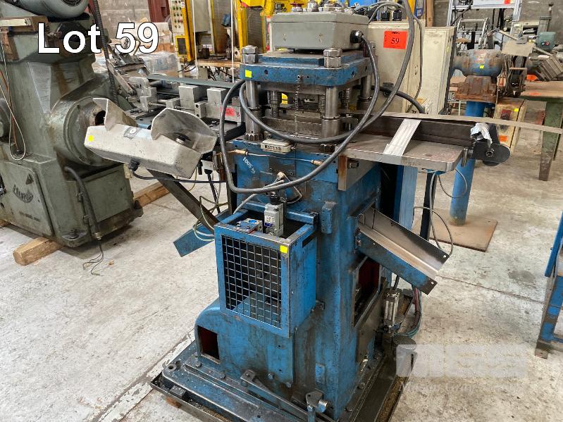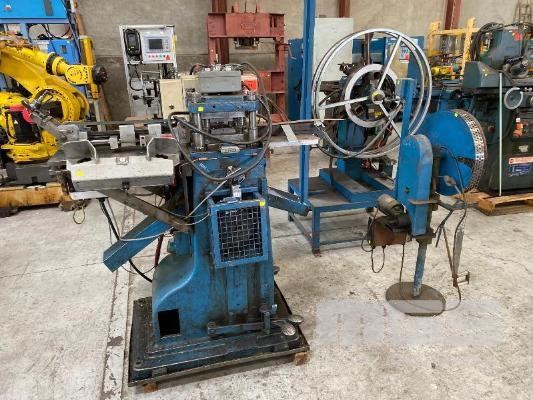 PRESS LINE, PNEUMATIC/ELECTRICAL, AUTOMATED FEED IN/OUT 4 POST PRESS GEAR DRIVEN SPRING RETURN REMOTE CONTROL UNIT DECOILER IN FEED, CLARKS 415V & RECOILER, 240V