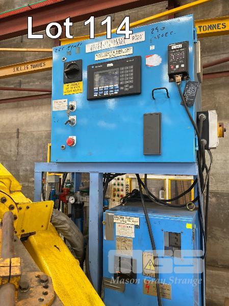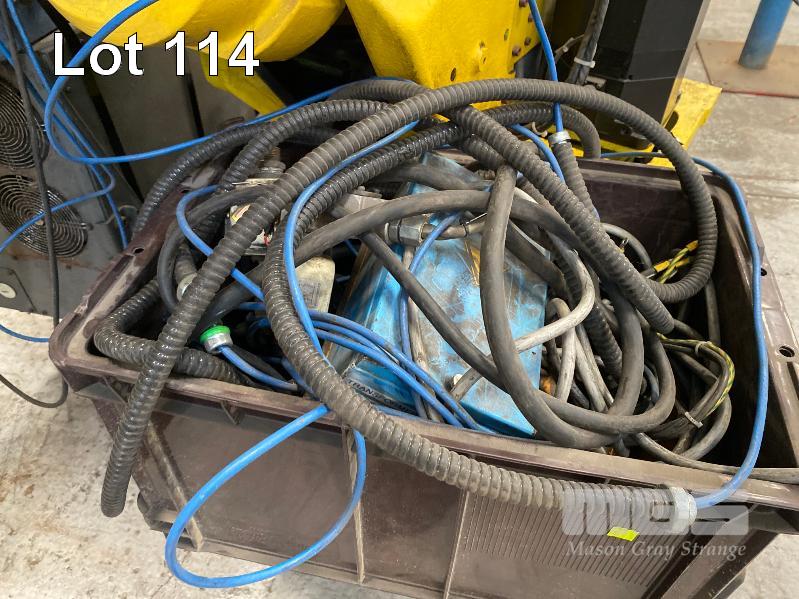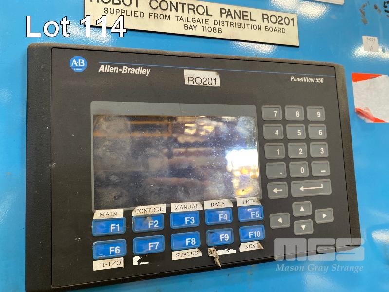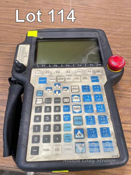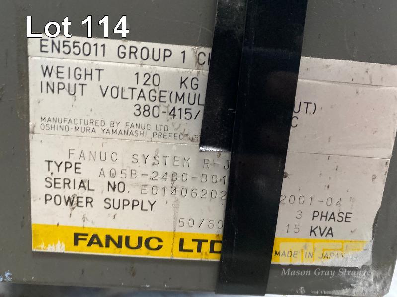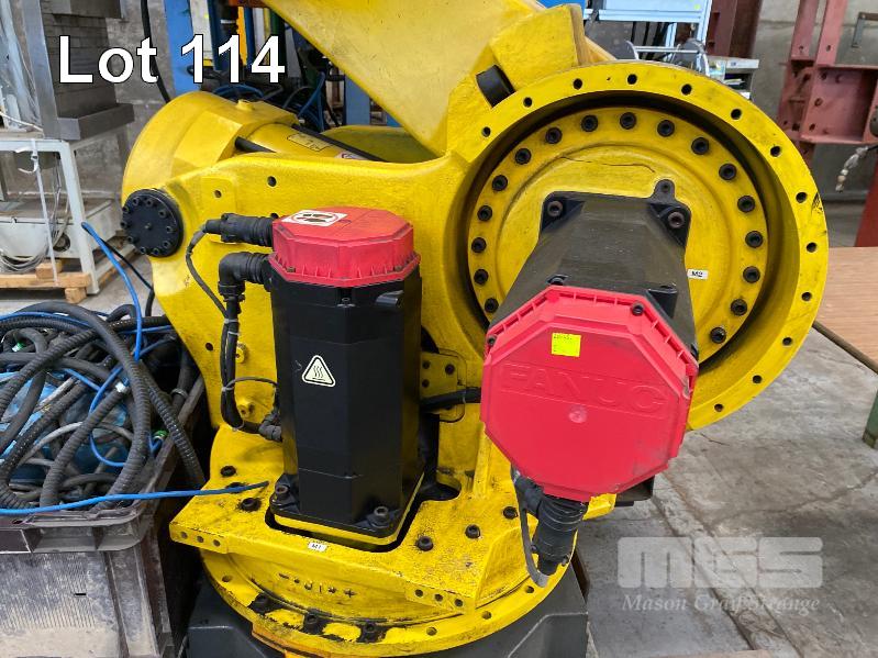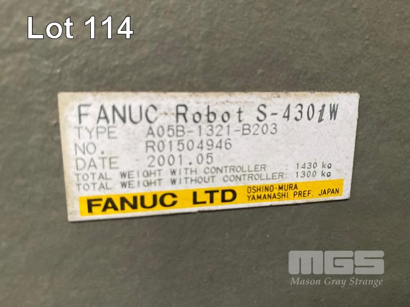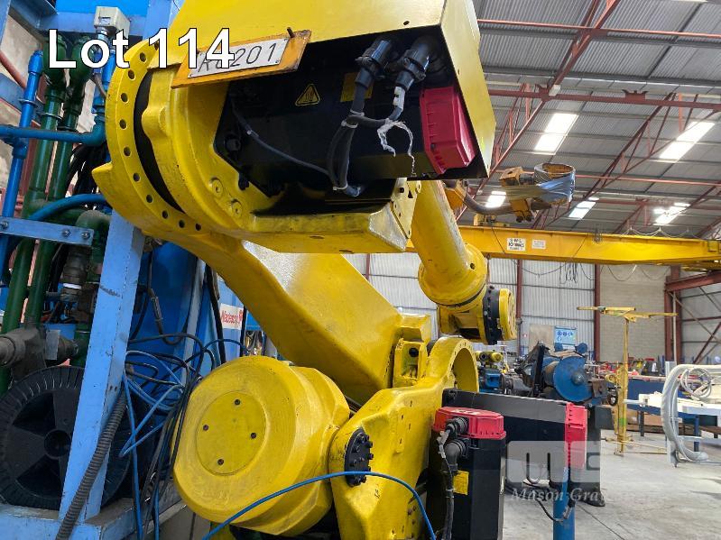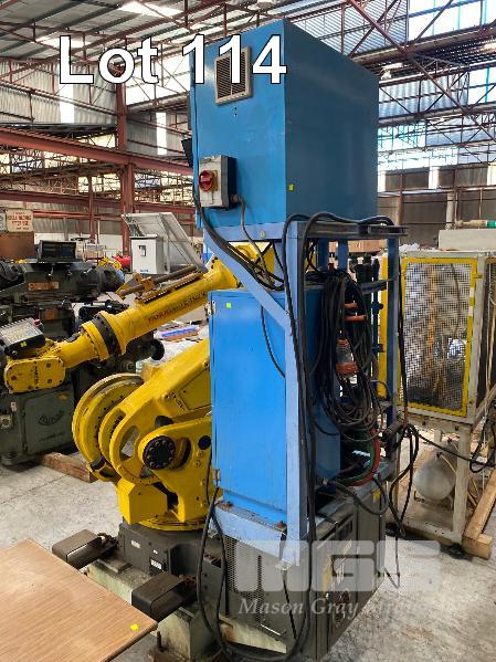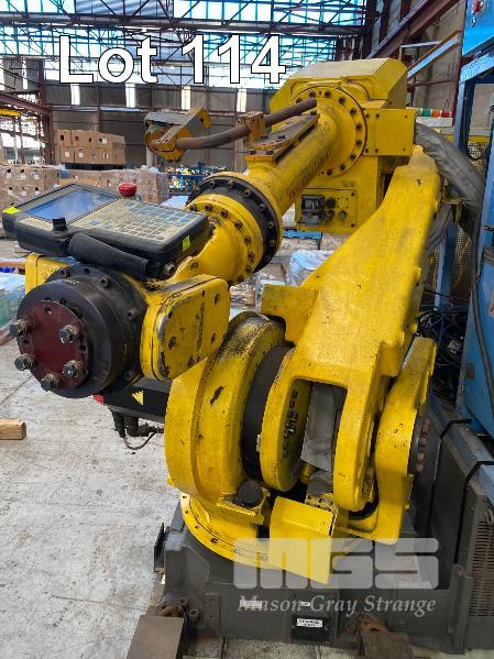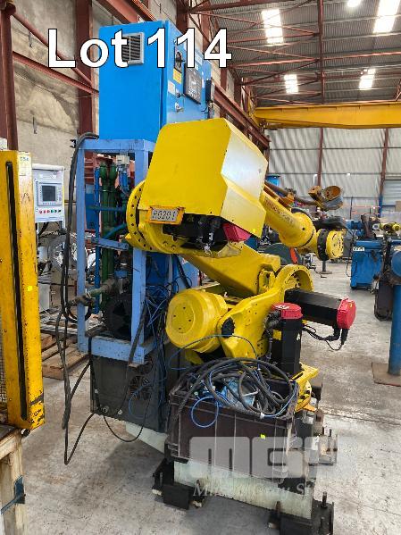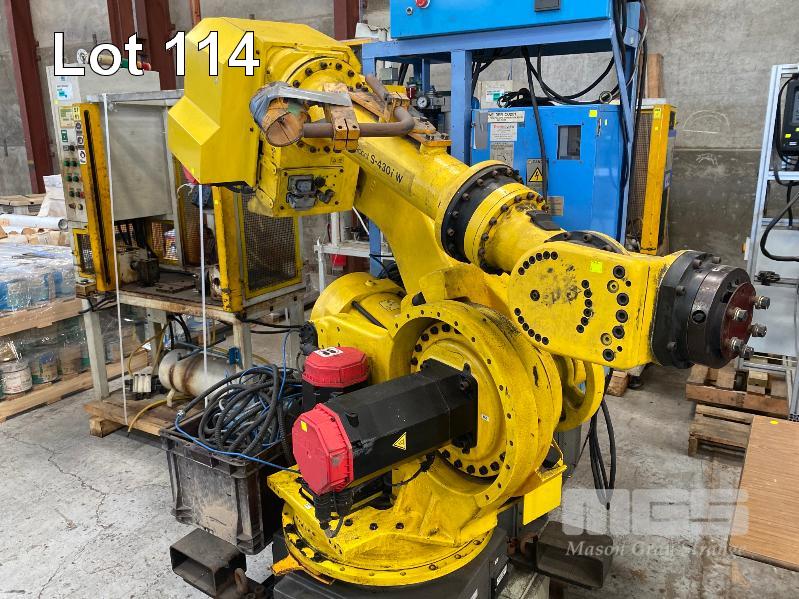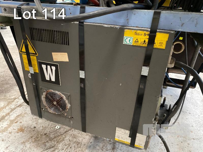 ROBOT FANUC, MOD: S-430IW INDUSTRIAL CNC ROBOT 360 DEGREE ROTATION, 3 JOINT ARM WITH ROTATING HEAD, PENDANT CONTROLLER, ALLEN BRADLEY PLC, SLC 500, PANELVEIW 550 CONTROL INTERFACE, POWER DRIVE UNIT, WELDING CONTROLLER & AUXILIARIES & CABLES