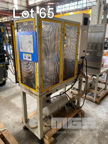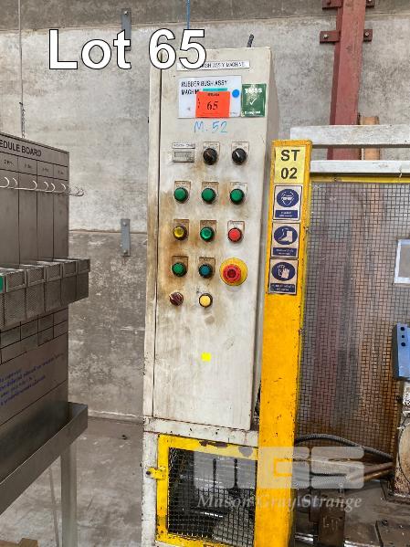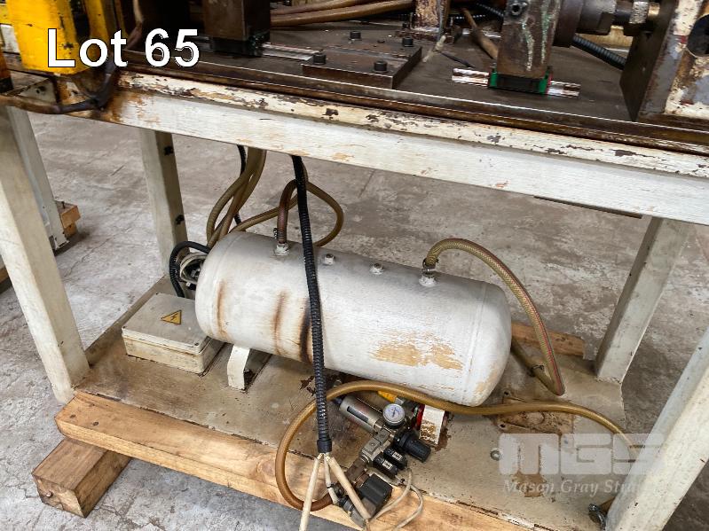 PNEUMATIC ASSEMBLY BENCH/ENCLOSURE SUIT RUBBER BUSH ASSEMBLY WITH TWIN AIR RAMS, AIR RECEIVER TANK, CONTROL BOX, ETC