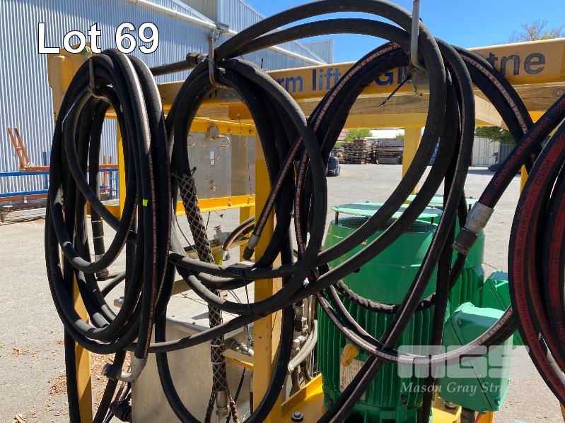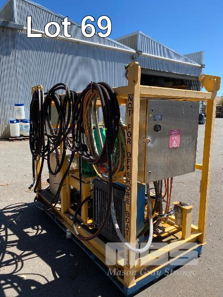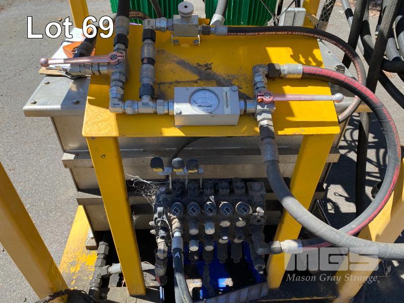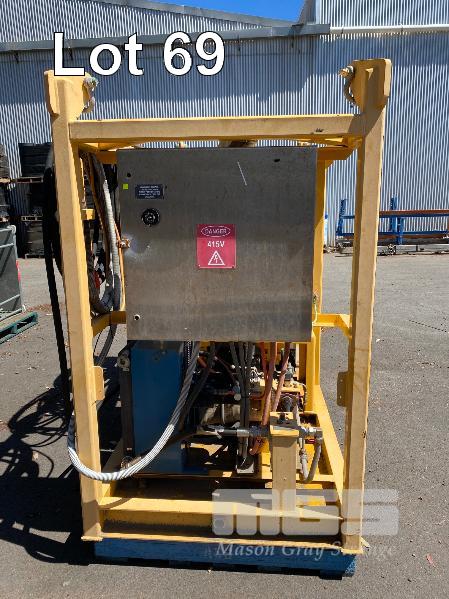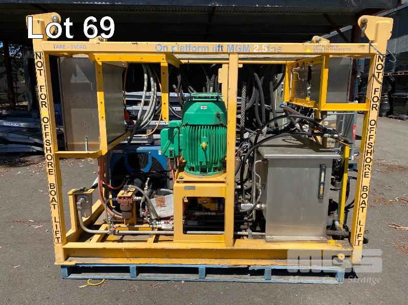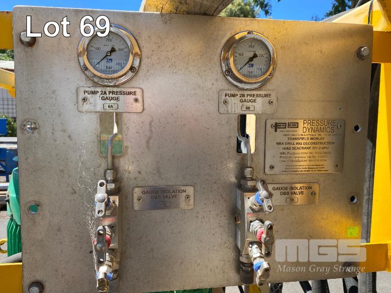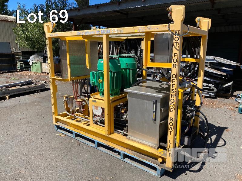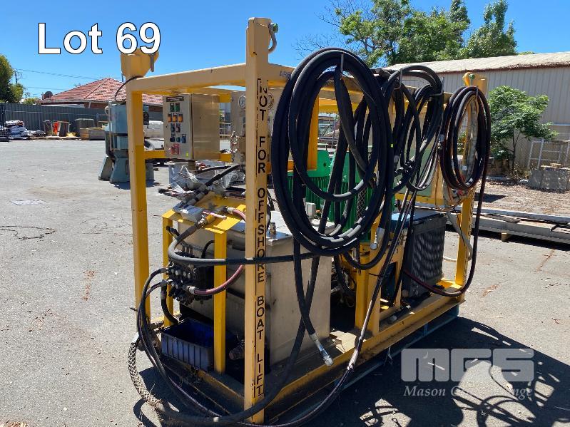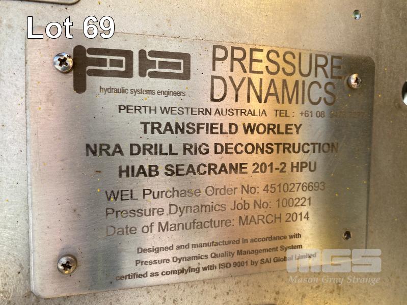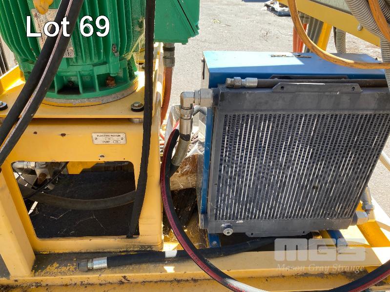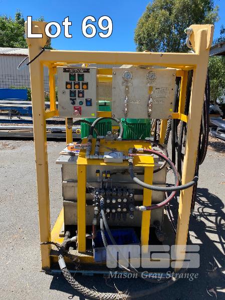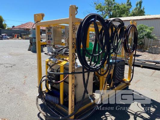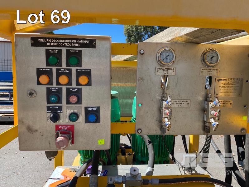 HYDRAULIC POWER PACK, SUIT CONSTRUCTION CRANE MANUFACTURED BY PRESSURE DYNAMICS DOM: 2014 FITTED WITH TWIN ELECTRIC MOTORS, 22KW, 415V LARGE RESEVOIR OIL TANK, OIL COOLER, FILTERS MULTI STAGE CONTROLLERS, DISTRIBUTION & CONTROL CABINETS MOUNTED ON ENCLOSED STEEL SKID/LIFTING CRADLE WITH LIFTING LUGS SIZE 2500 x 1250 x 1940mm (H)