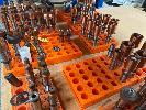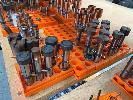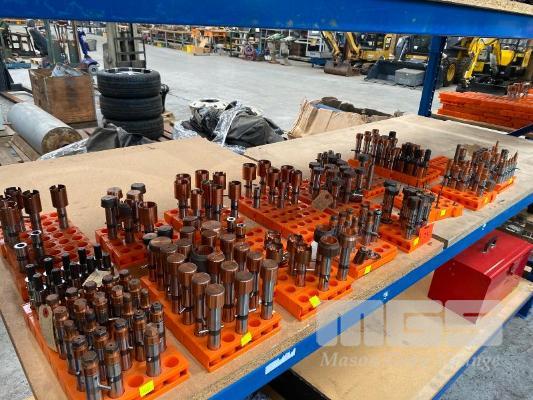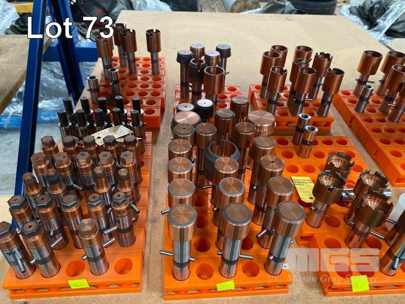 EDM TOOLING, LARGE QUANTITY COPPER TIP & TOOL HOLDERS, ASSORTED TYPES & STYLES IN SYSTEM R3 TRAYS