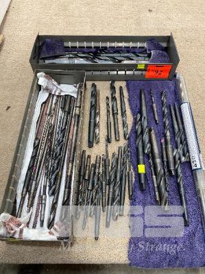 50 (APPROX) x MT DRILL BITS, ASSORTED SIZES, FROM 260 TO 3mm, LONG & SHORT WITH ROUTER BIT SET