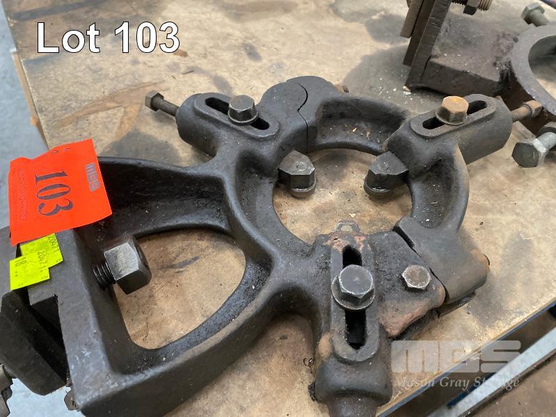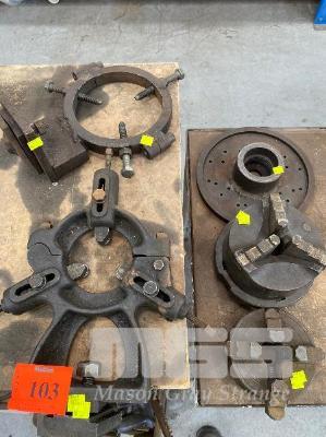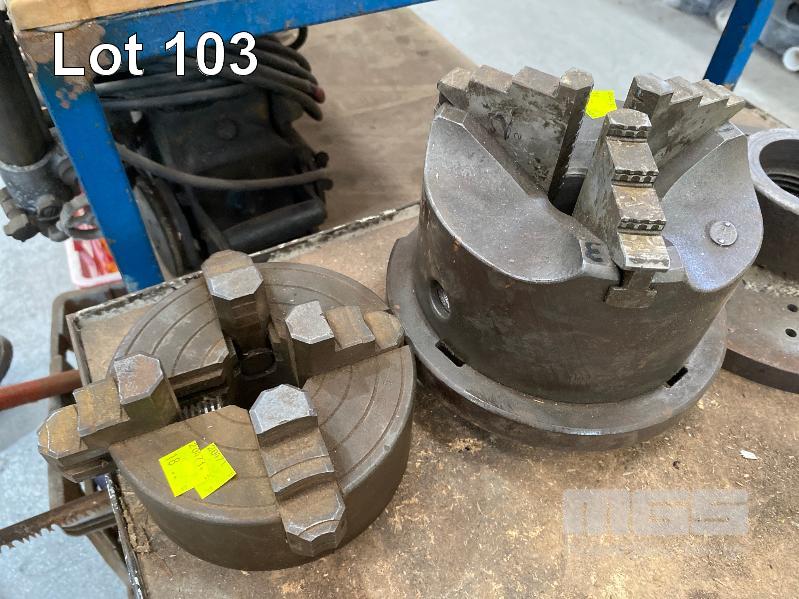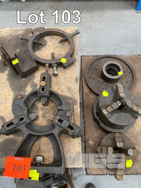 ASSORTED LATHE TOOLS, 2 x STEADIES, 3 JAW CHUCK, 160mm, 4 JAW CHUCK, 150mm & FACE PLATE, 170mm