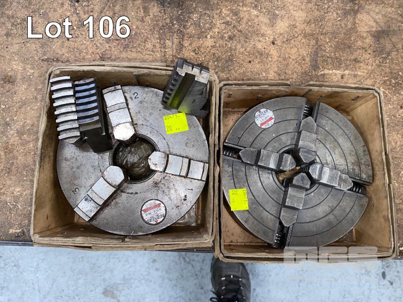 2 x LATHE CHUCKS, BURNERD 4 JAW MOD: 34-MC 150mm & 3 JAW MOD: 30A-MC, 130mm
