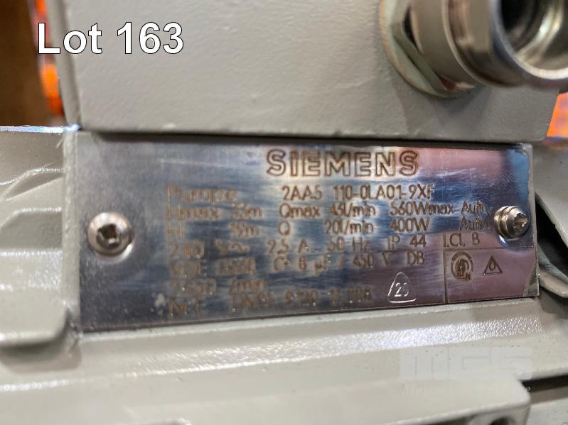 FLUID PUMP, SIEMENS, ZAAS HEAD: 33m FLOW 45L/MIN, 240V, AS NEW & 2 x MULTI PARTS DRAWER UNITS & CONTENTS