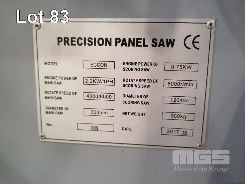 OODMAN 300mm PRECISION PANEL SAW MOD: ECCON SCORING BLADE: 120mm TABLE 940 (W) x 620mm (D) SLIDING TABLE 1600 (W) x 370mm (D) OUTRIGGER & OUTRIGGER TABLE CROSSCUT FENCE, FLIP STOP, RIP FENCE, BLADE PROTECTOR & DUST EXTRACTOR DOM: 2017 240V