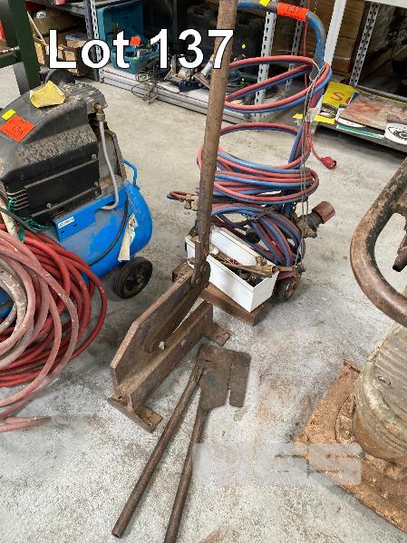 OXY ACETYLENE KIT, TROLLEY AND PARTS & LARGE MANUAL PLATE SHEAR 200mm & FIBRO CUTTER