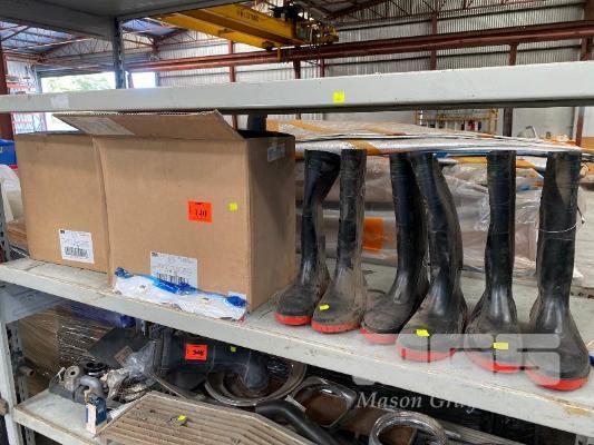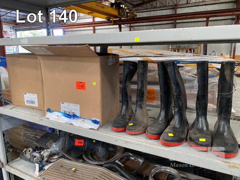 3 x PAIRS RUBBER BOOTS, SIZE: 8/42 & 1 x BOX (200/BOX) DUST MASKS, 3M AURA