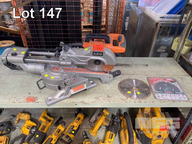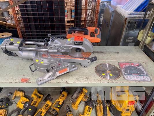 SLIDE MITRE SAW, AEG MOD: PS2165B2 216m BLADE & SPARE BLADES