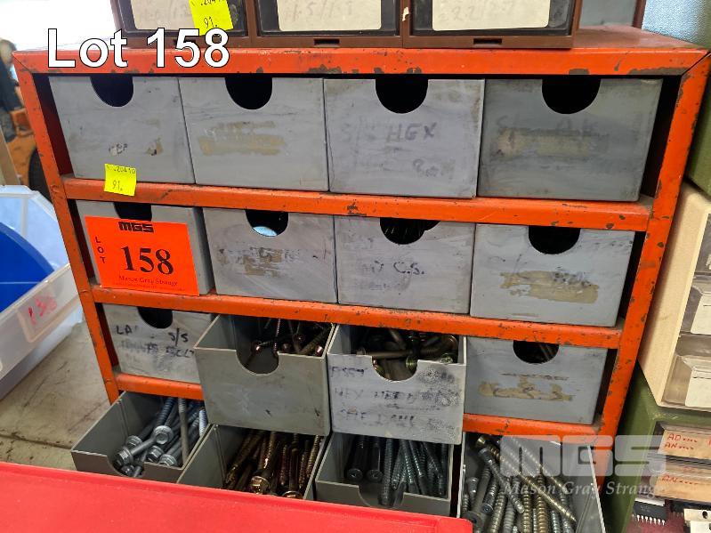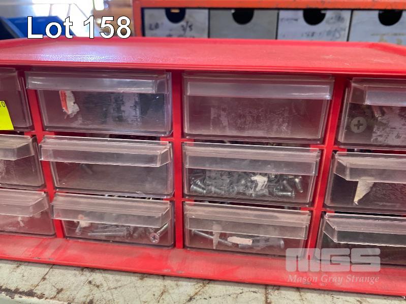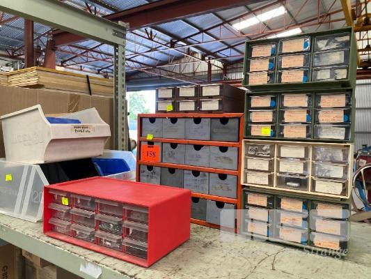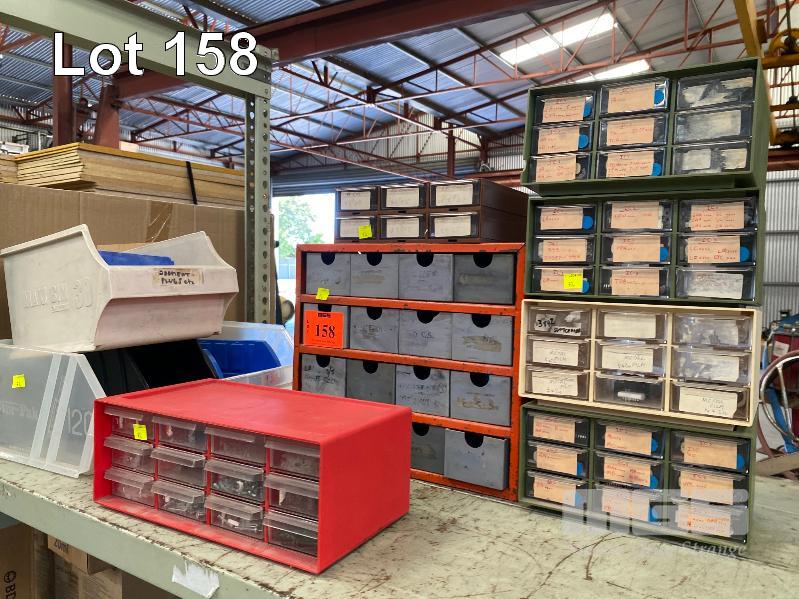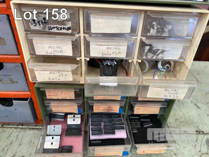 ASSORTED ELECTRONIC COMPONENTS, HARDWARE, 4 x 9 DRAWER, 1 x 16 DRAWER, 1 x 12 DRAWER, 1 x 6 DRAWER, ETC