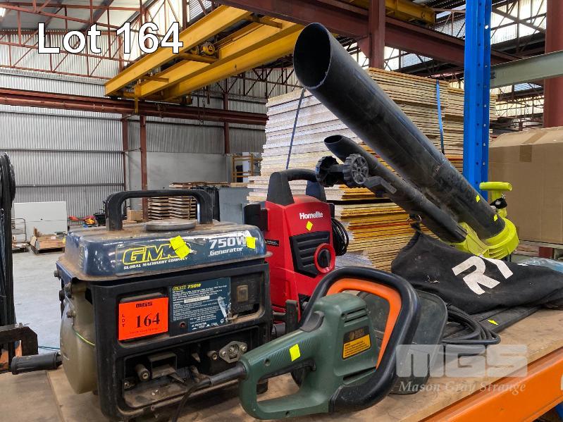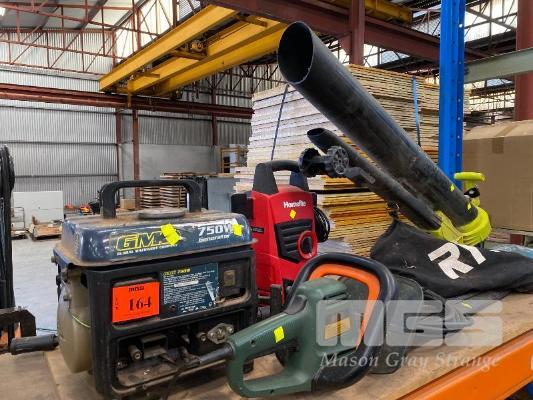 GMC GENSET, 750w, 240V, PETROL, HOMELITE PRESSURE WASHER, RYOBI BLOWER VAC & B&D EDGE TRIMMER, 240V