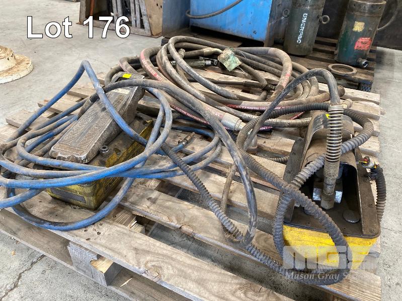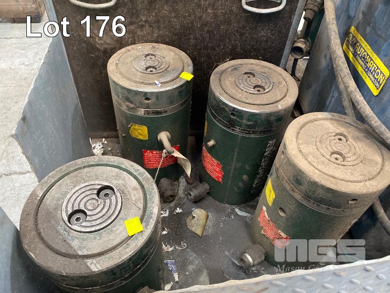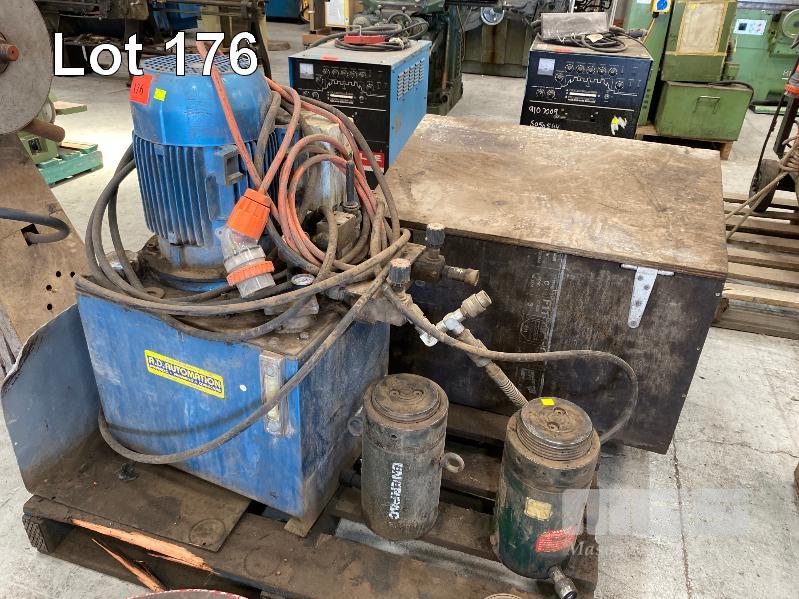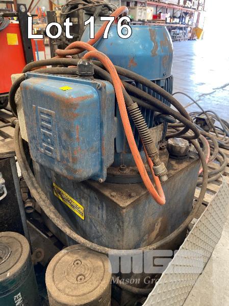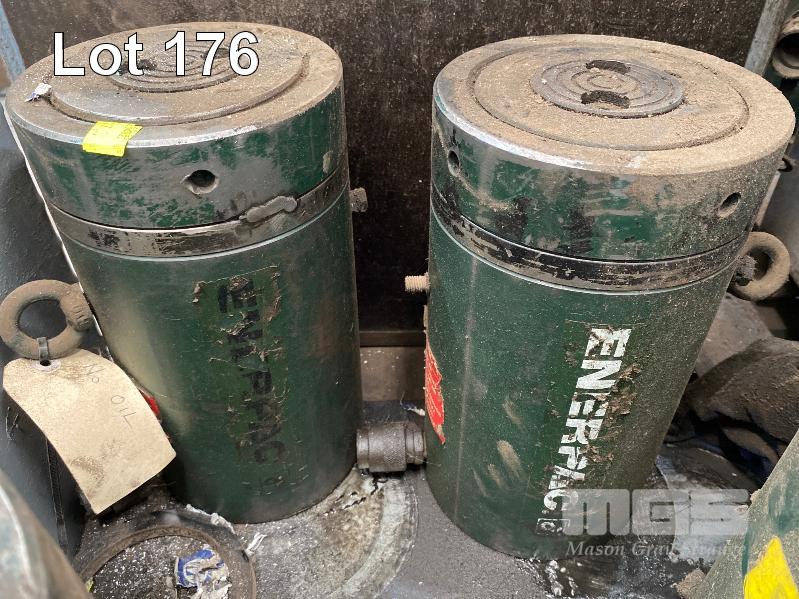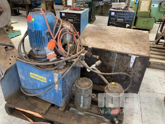 HEAVY DUTY JACKING SYSTEM COMPRISING 6 x HYDRAULIC JACKS, ENERPAC 100 TONNE CAP EACH 160mm DIA x 300mm (H) POWER PACK, 415V, 3.7kw 2 x FOOT CONTROLLERS, HOSES & REGS (2 x PALLETS)