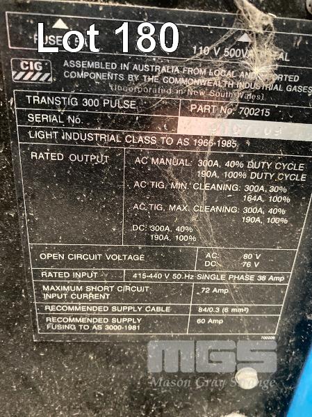 TIG WELDER, CIGWELD, TRANSTIG 300 PULSE WITH HAND PIECE & REMOTE, 415V