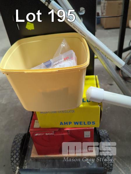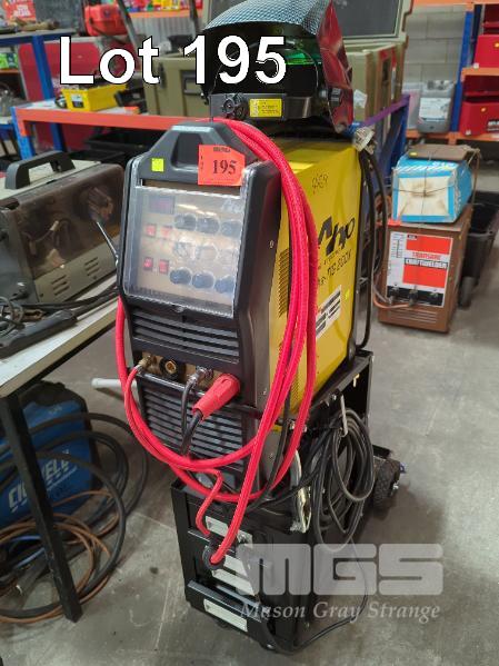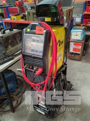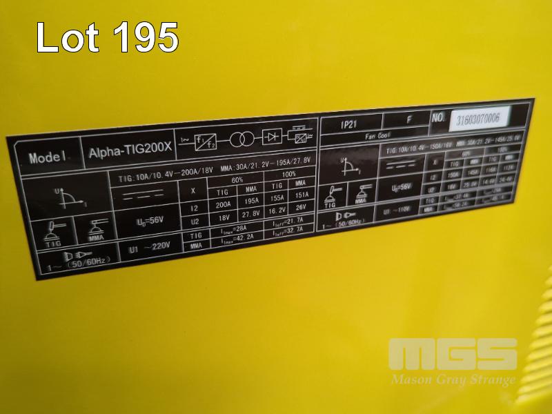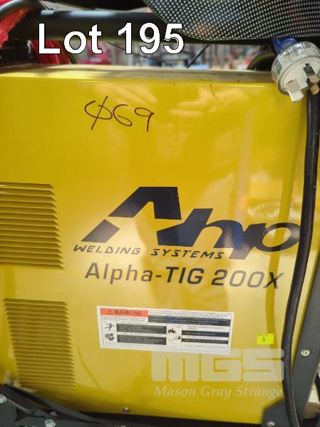 TIG WELDER, AHP ALPHA-TIG 200X WITH CABLES, TIG & ARC HAND PIECES, TIPS, FOOT CONTROLLER, REGULATOR & FLOW METER, 240V ON TROLLEY, INC AUTO TINT WELDING HELMET, TIG FILLER RODS AND SPARE PARTS.