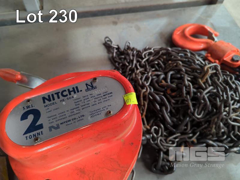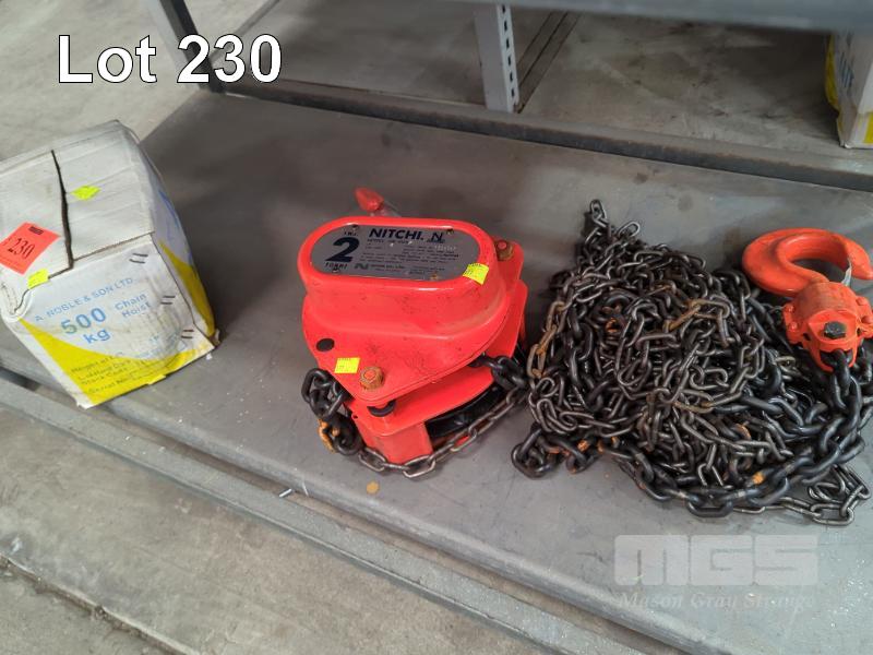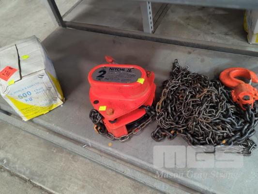 2 x CHAIN BLOCKS, NOBLES 2 TONNE NITCHI x 6m & 500kg RIGMATE x 3m