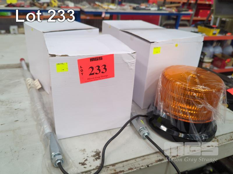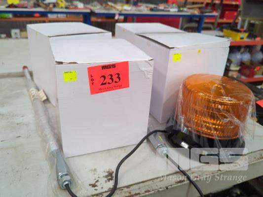 4 x LED ROTARY WARNING/HAZARD LIGHTS, 12V OLZWEIG, FL375M, MAGNETIC, ROOF MOUNT & 2 X LED POLE STROBE LIGHT, RED & AMBER, 600mm, ATLAS, 12V
