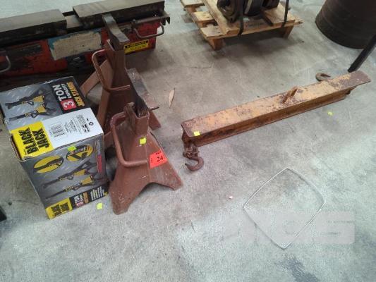2 x PAIR CHASSIS STANDS, 3 & 4 TONNE WITH SPREADER LIFTING BEAM, 950mm