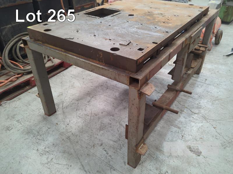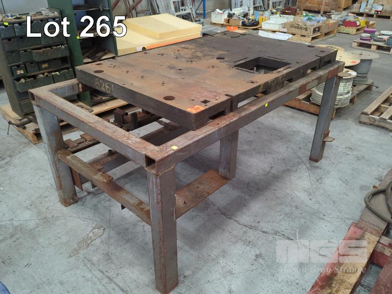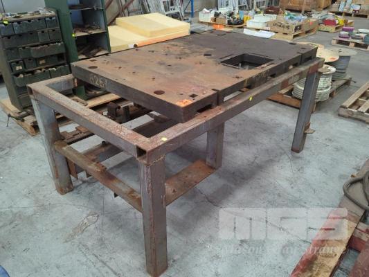 WORK BENCH, HEAVY DUTY STEEL BASE, 1800 x 1100 x 900mm (H), 80mm PLATE STEEL TOP WITH CUTOUTS & BOLT THROUGH HOLES