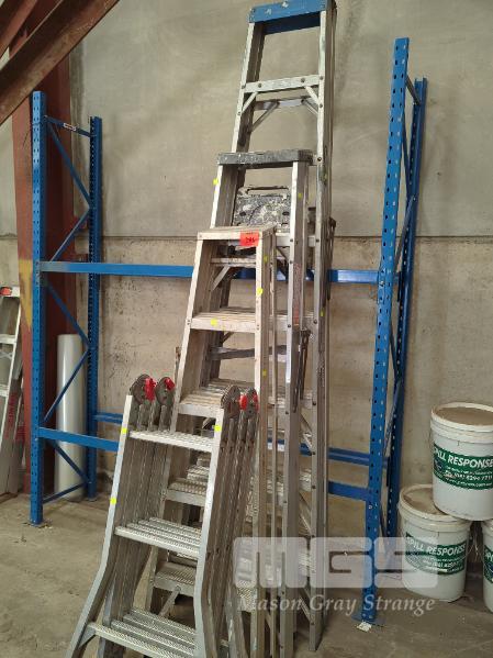 4 x ALLOY LADDERS INCLUDING CONTRACTOR A-FRAME, 2400mm, DOMETIC 1800mm, STEP 1500mm & FOLDING, 4000mm