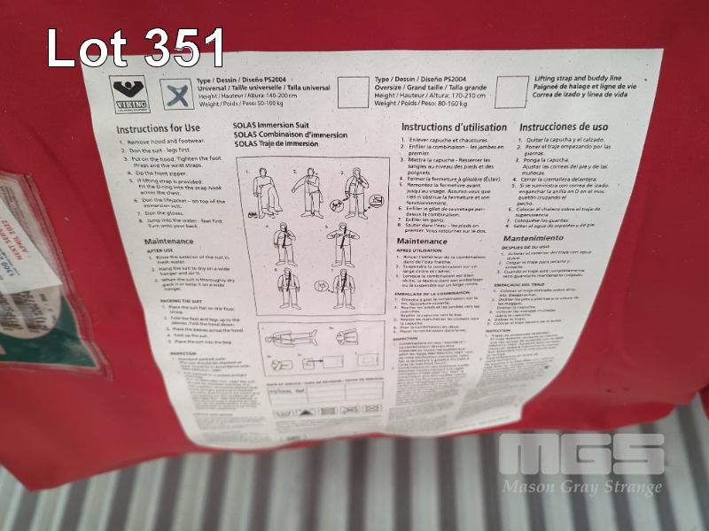 3 x VIKING SOLAS IMMERSION SUITS MOD: PS2004 DOM: 2016 SIZE: UNIVERSAL HEIGHT: 140-200cm WEIGHT: 50-100kg HIGH VISIBILITY YELLOW REFLECTIVE TAPE FOR HIGH VISIBILITY IN THE DARK THERMAL PROTECTION IN COLD WINTER IN CARRY BAG