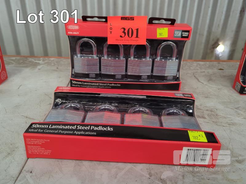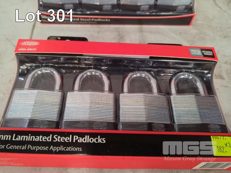 8 x PADLOCKS, LOCKWOOD ASSA ABLOY, 50mm LAMINATED STEEL 2 x PACKS, (4/PACK) NEW