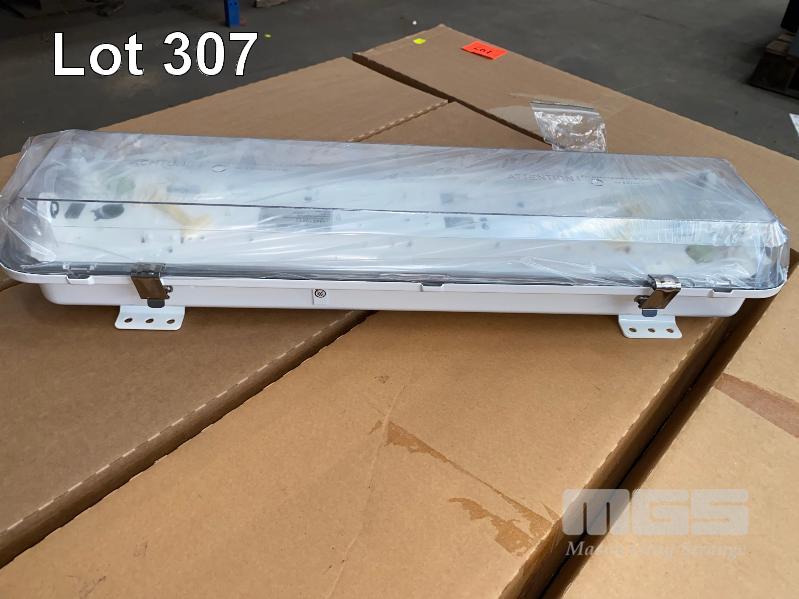 10 x WEATHERPROOF FLURO LIGHT FIXTURES, AQUA SIGNAL MULTI PURPOSE, 2 x 18w 110/115V (NEW)