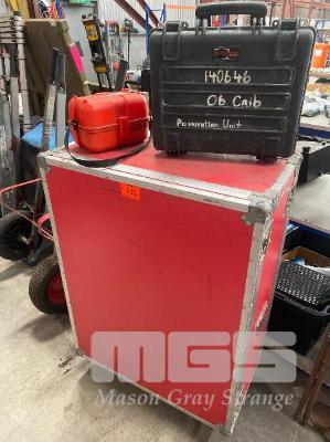 TRANSPORT CASES, ALLOY TRAVEL CASE, BLUE CAT,MOBILE, REMOVABLE DOORS BOTH SIDES, 820 x 420 x 1050mm RED, POLY AIR TIGHT CASE, EXPLORER 460 x 360 x 220mm BLACK & SMALL RED WEATHER PROOF POLLY CASE.