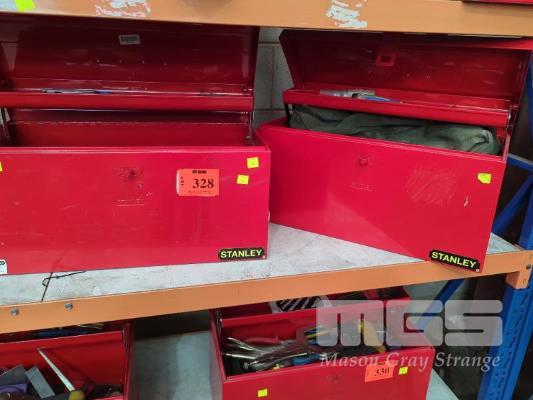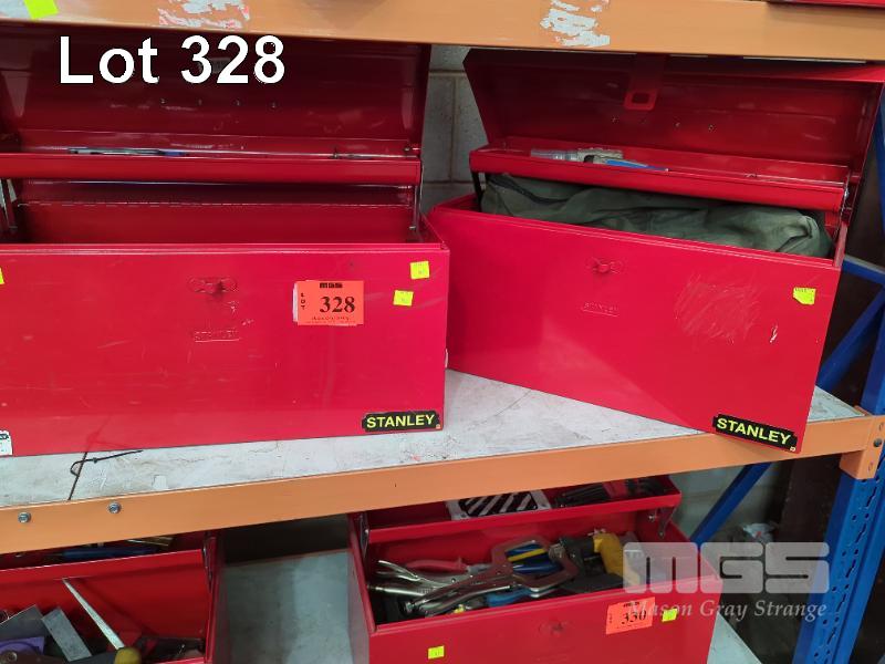 2 x TOOLBOXES, STANLEY WITH VARIOUS TOOLS INCLUDING HAMMERS, VICE GRIPS, SPANNERS, SPIRIT LEVEL, ETC