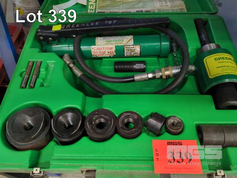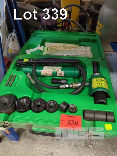 HYDRAULIC PUNCH SET, GREENLINE, 7306 KNOCKOUT PUNCH DRIVER SET WITH 5 DIES, 1/2", 3/4", 1", 1 1/4" & 1 1/2" IN CARRY CASE