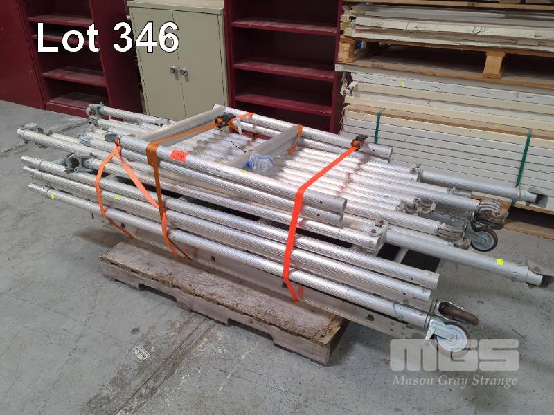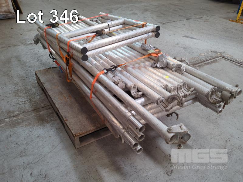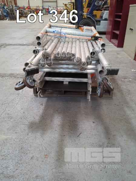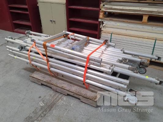 ALLOY SCAFFOLDING,MOBILE, SHOW AUSTRALIA COMPRISING 4 x UPRIGHTS, 2100mm & 2 x 1000mm 2 X FLOOR SECTIONS, 1700mm, 2 x ANGLED SUPPORTS, 2500mm, 6 x CROSS BEAMS @ 1700mm & 4 @ 2100mm 1 x PALLET