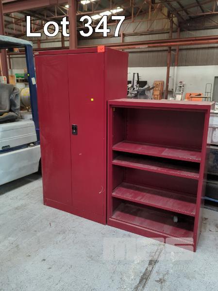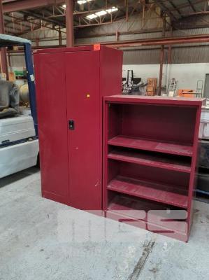 STEEL SHELF UNIT, 900 x 1350mm (H), 4 TIER, RED & 2 DOOR, RED STEEL, STORAGE CABINET 900 x 1800mm (H)