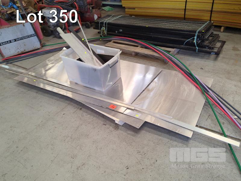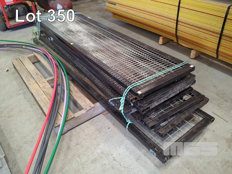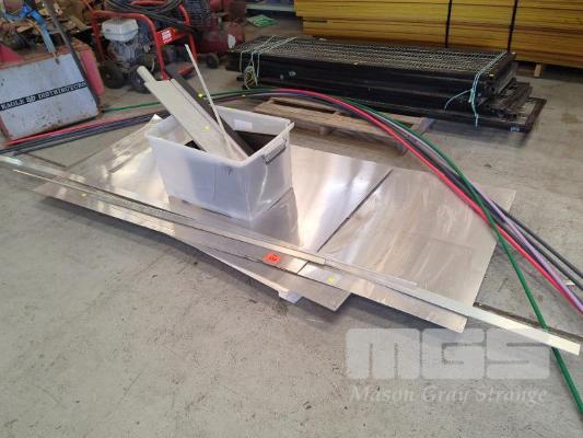 9 x STEEL MESH FRAMES/PANELS, 490 x 2100mm (H) & ALLOY SHEET METAL, 1 & 5mm PLATE, 9 x SHEETS ASSORTED SIZES INCLUDING 2400 x 1000 x 1mm, 2000 x 100 x 5mm WITH CUTOUT & SMALLER SHEETS 2 x PALLETS