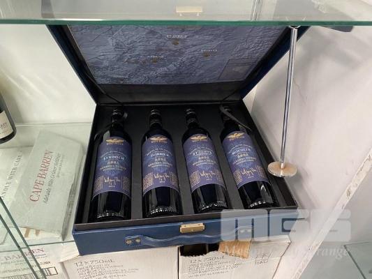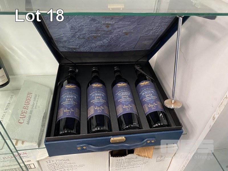 WOLF BLASS GIFT PACK CONTAINING 4 X WOLF BLASS ESTATES OF THE BAROSSA "THE COLLECTION" SAPPHIRE LABEL 2012 BAROSSA SHIRAZ, 750ML. 1 @ BOTTLE "5351" LYNDOCH 1 @ BOTTLE "5352" DORRIEN, 1 @ BOTTLE "5355" ST JOHN'S EBENEZER ROAD 1 @ BOTTLE "5353" MOCULTA
