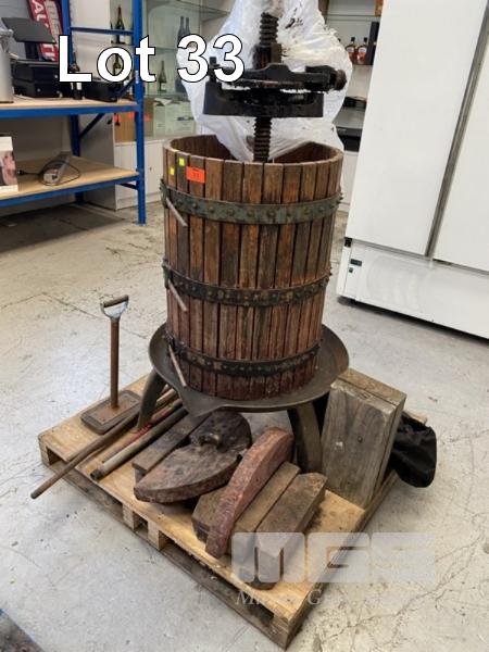 BASKET PRESS, 73cm (H), 53cm DIAMETER ON STAND WITH ACCESSORIES