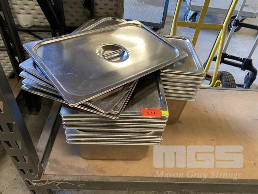 15 (APPROX) x STAINLESS STEEL FOOD PANS, FULL & 1/3 SIZE
