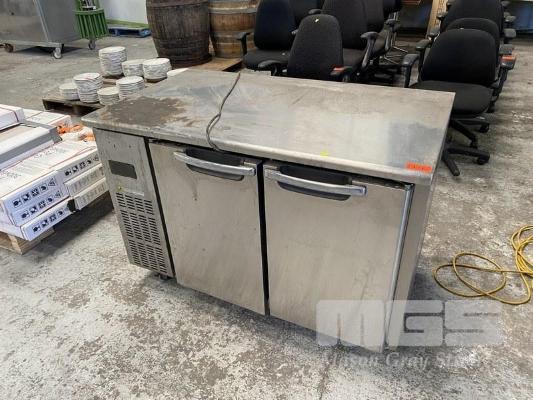 2 DOOR UNDER COUNTER REFRIGERATOR, SKOPE MOD: BC120C-2RROS-E 220-240V, 10A DOM: 2006 STAINLESS STEEL ( ALL FAULTS, NOT COOLING ) 1205 x 700 x 840mm