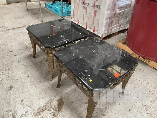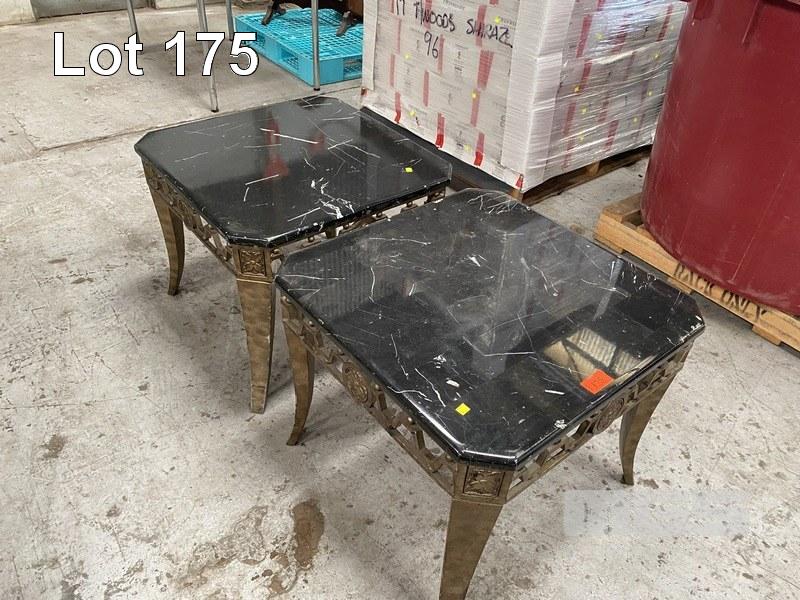 2 x GRANITE LOOK TOP SIDE TABLES,
