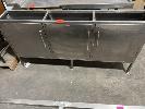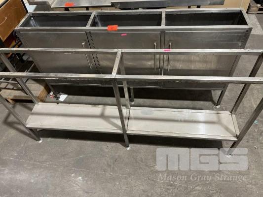3 DOOR STAINLESS STEEL CUPBOARD & PREP BENCH FRAME, MISSING TOPS, 1700 x 255 x 880mm