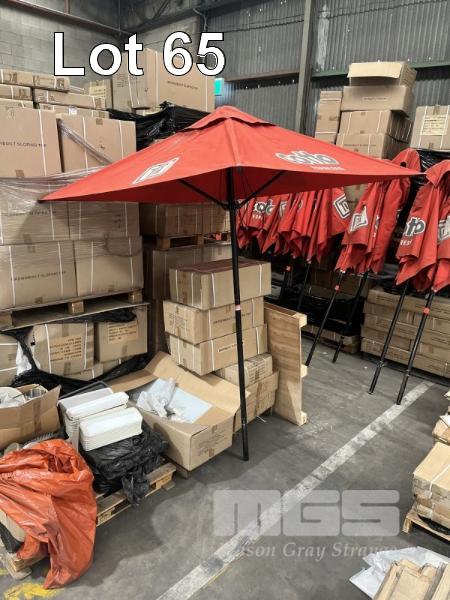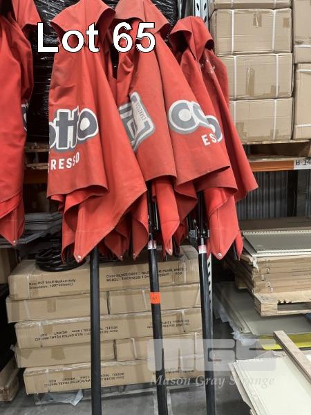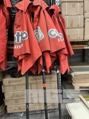 3 x CAFE PATIO UMBRELLAS "COTTO ESPRESSO" BRANDED, 1800 x 1800mm OPEN DIMENSIONS