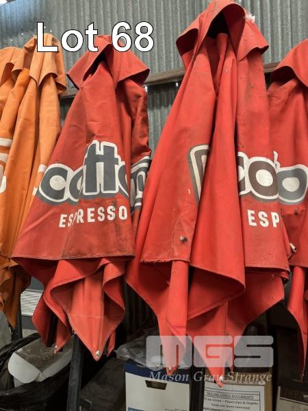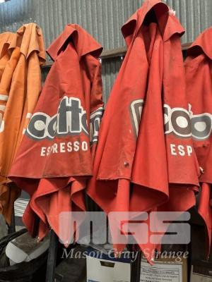 2 x CAFE PATIO UMBRELLAS "COTTO ESPRESSO" BRANDED, 1800 x 1800mm OPEN DIMENSIONS
