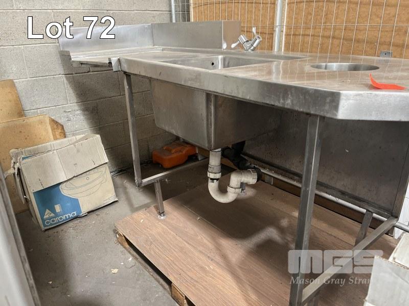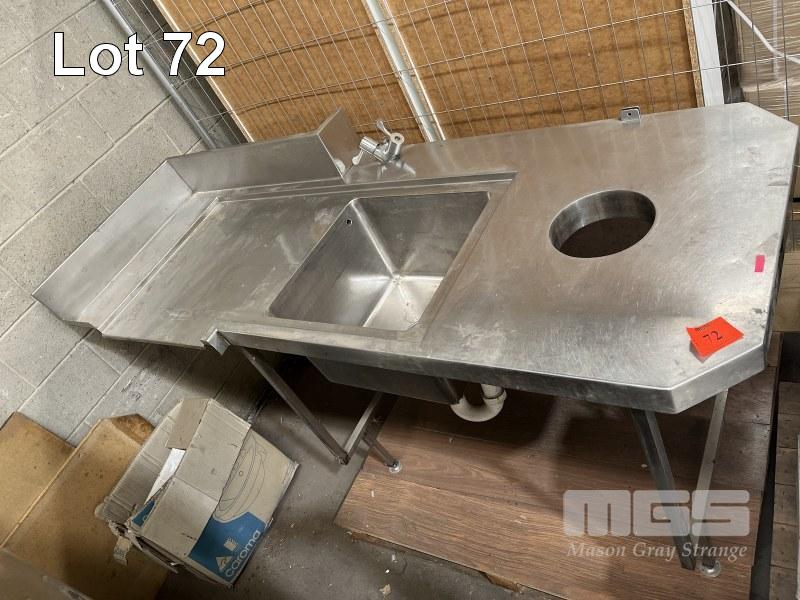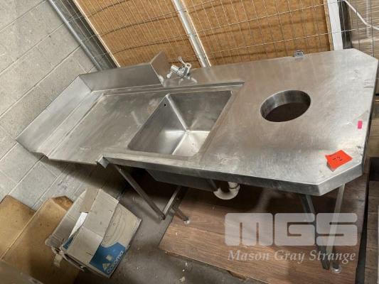STAINLESS STEEL DISH WASHING STATION WITH SINK & SCRAPS HOLE 1890 x 785 x 1045mm & STAINLESS STEEL BENCH FRAME 1020 x 615 x 890mm (MISSING TOP)