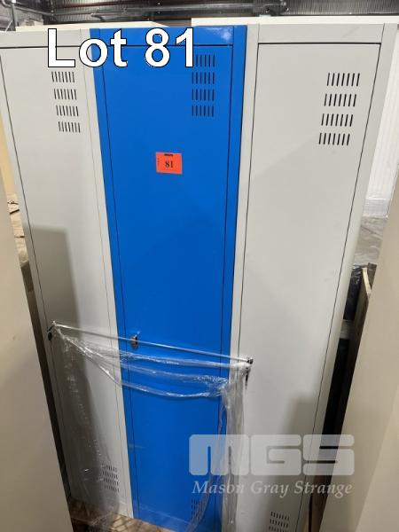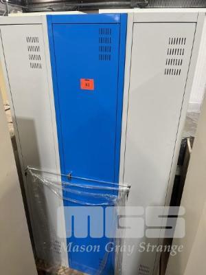 3 x NEW SINGLE DOOR STEEL STOCK LOCKER, 2 x GREY 1 x BLUE