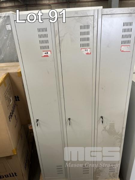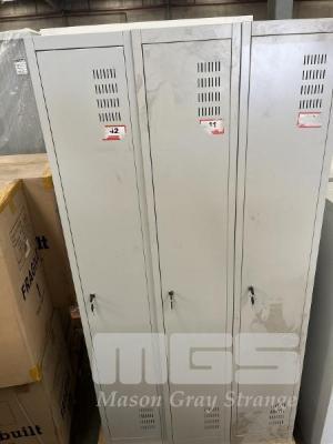 3 x NEW SINGLE DOOR STEEL LOCKERS, GREY (EX DISPLAY MODELS)