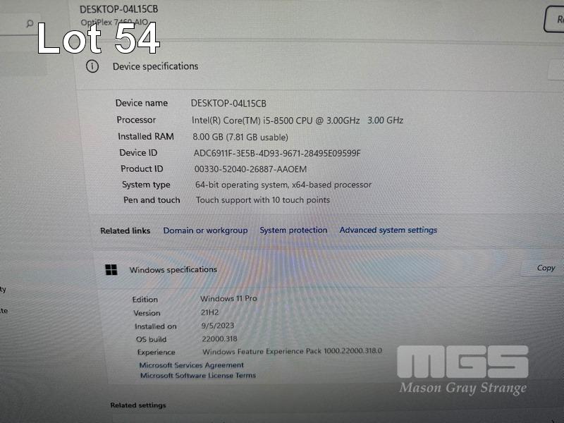 ALL-IN-ONE PC, DELL OPTIPLEX 7460, CORE i5 8500 (8TH GEN) @ 3GHz, 8GB DDR4 RAM, 512GB NVMe M.2 SSD, INBUILT 23.8" IPS TOUCHSCREEN (1920x1080), INTEL HD VIDEO, WEBCAM, 5 x USB, 1 x USB-C, WINDOWS 11 PRO INSTALLED, KEYBOARD & MOUSE S/N:39ZBNX2